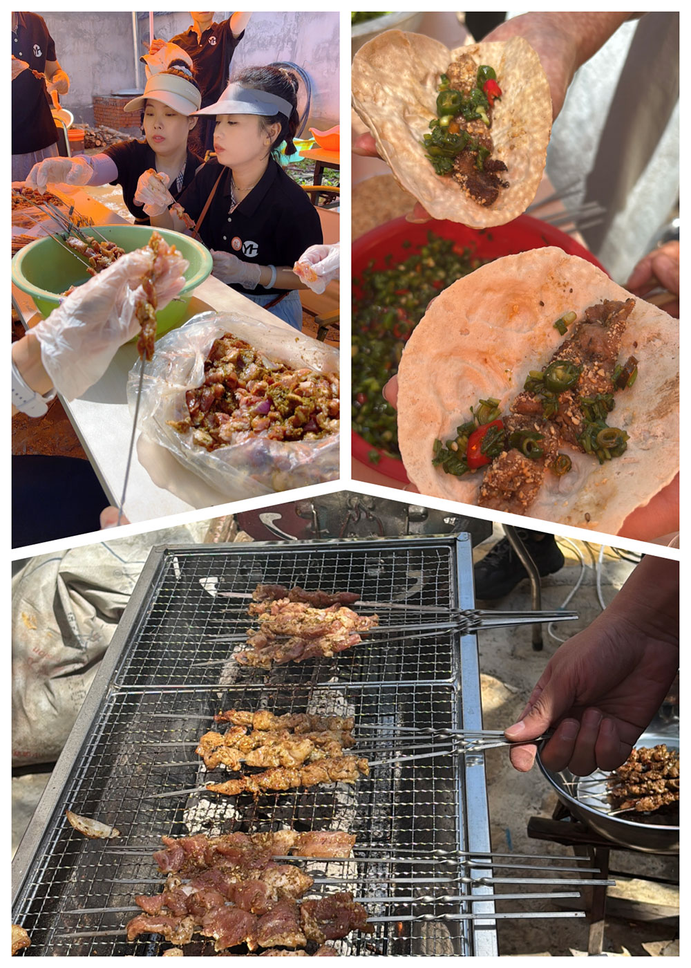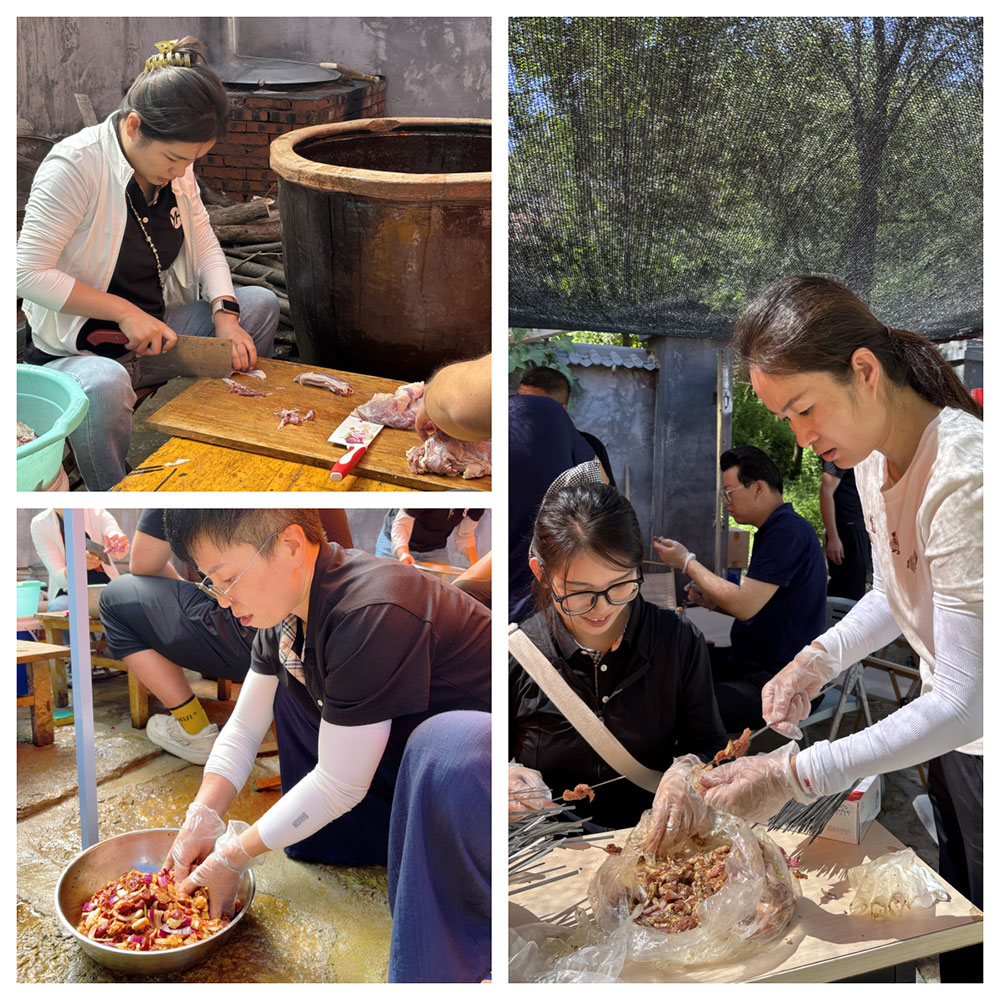 短暂的休整欣赏过后,迎来了令人期待的自助野炊。本次午餐,大家自己动手,言赫小伙伴们分工协作,清洗瓜果蔬菜、切肉穿肉、生火烤肉,配合默契。炭火噼啪作响,烤肉香气四溢,瓜果清甜爽口,大家围坐在一起,分享着美味,畅谈着生活与工作,笑声回荡在山谷之间。