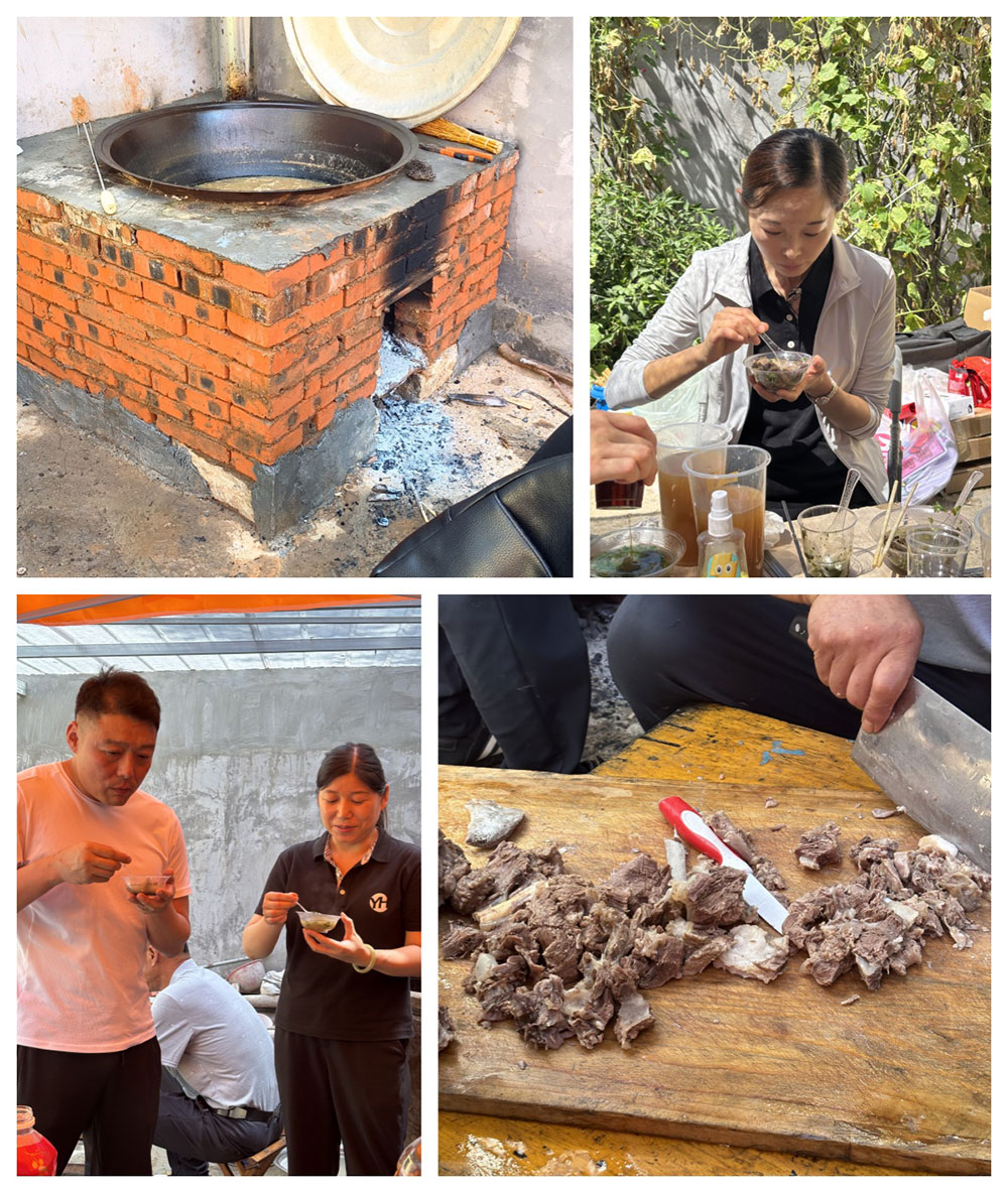 本次午餐,不仅有焦香的烤肉、香甜的瓜果,还有热气腾腾的羊汤和鲜美的羊肉,为这场盛宴增添了浓浓的暖意。一碗下肚,驱散了秋日的微寒,温暖了每个人的心。这份简单而纯粹的美味,成为了言赫家人们共同的美好记忆。